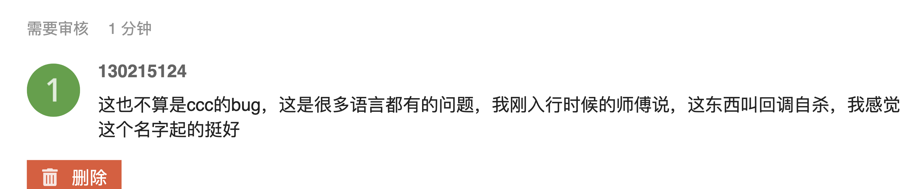 这也不算是ccc的bug,这是很多语言都有的问题,我刚入行时候的师傅说,这东西叫回调自杀,我感觉这个名字起的挺好