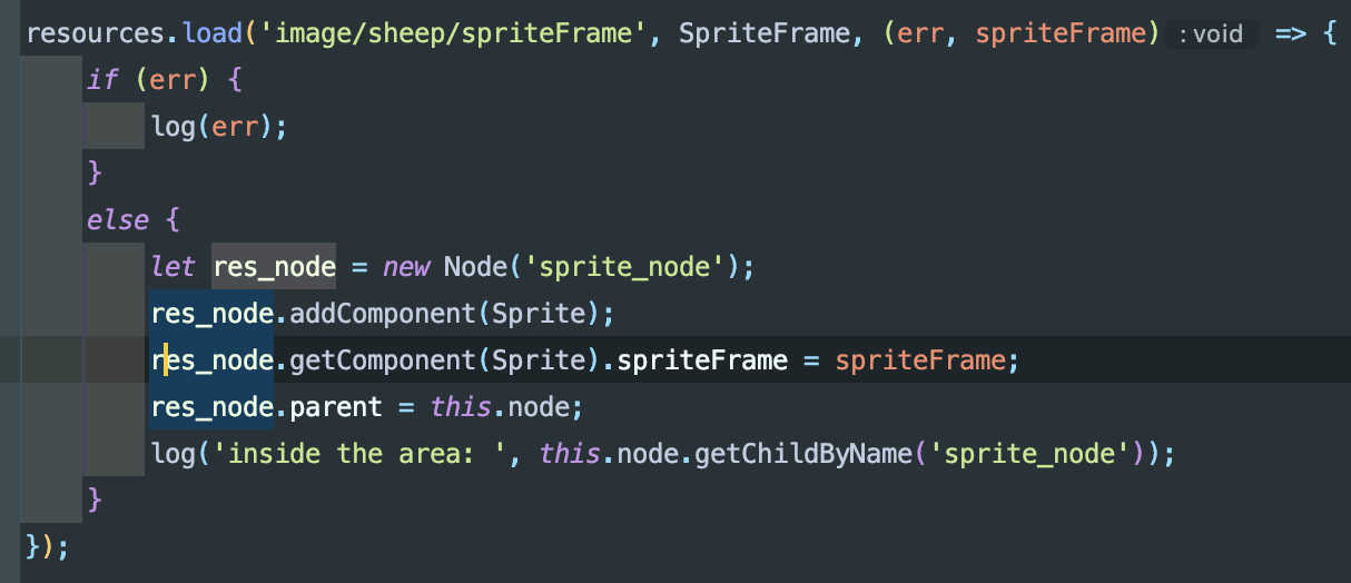 在resources.load({});代码块外调用log('outside the area: ', this.node.getChildByName(‘sprite_node’));返回结果为null。