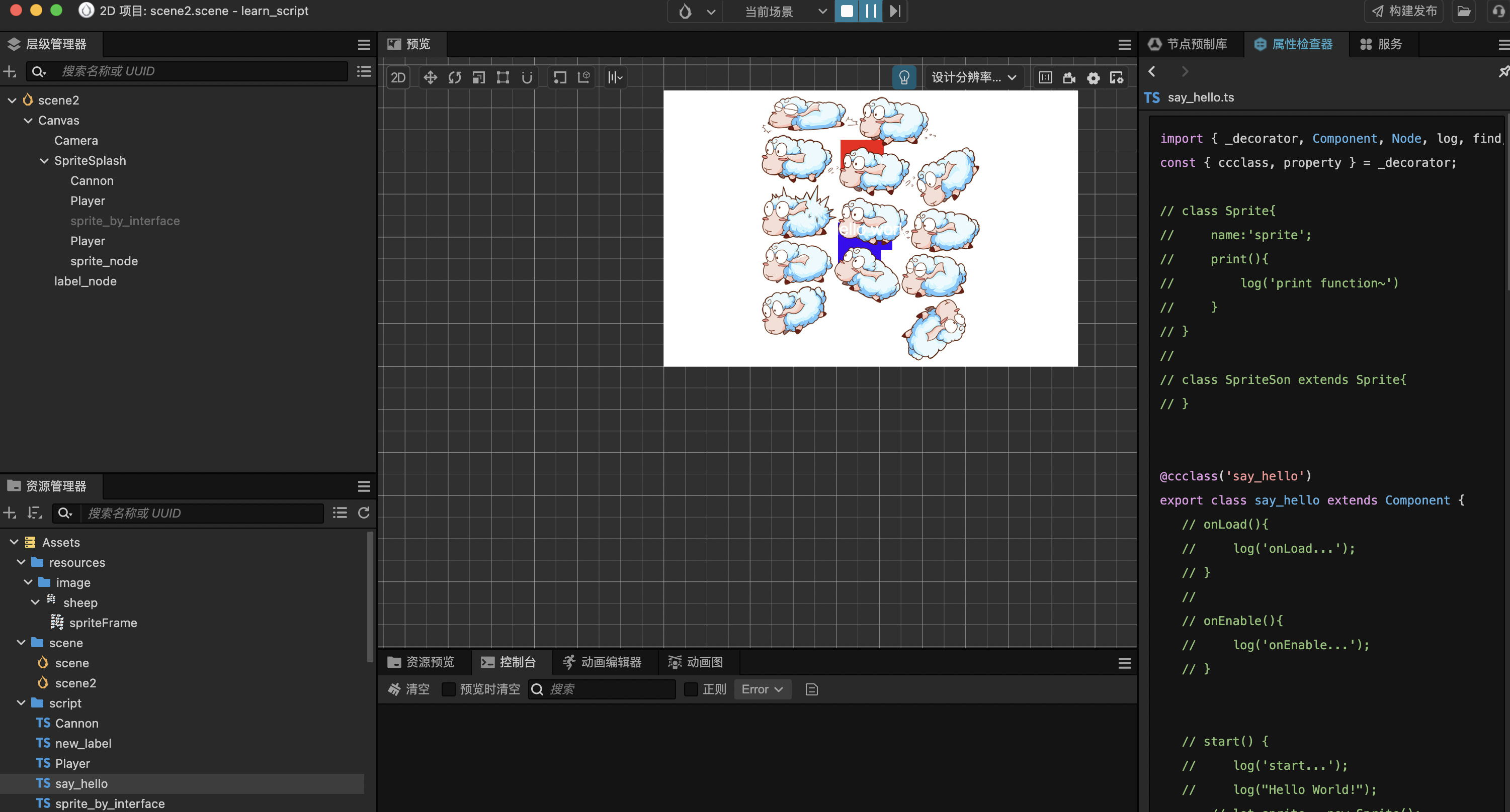 在resources.load({});代码块内调用log('inside the area: ', this.node.getChildByName(‘sprite_node’));可显示node相关信息。