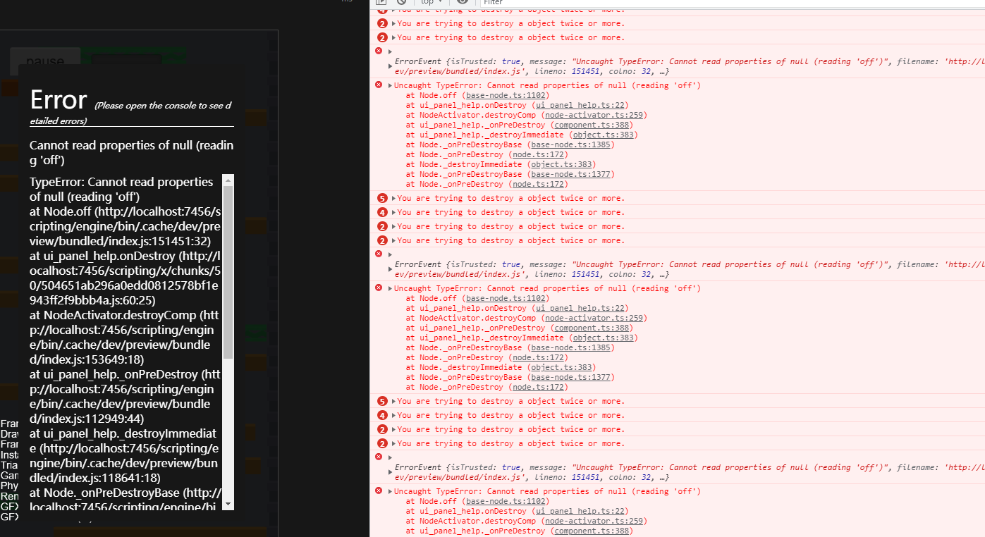 在切换场景时就会出错,一堆红色的。然后把回收侦听那句注释掉,运行就正常了。