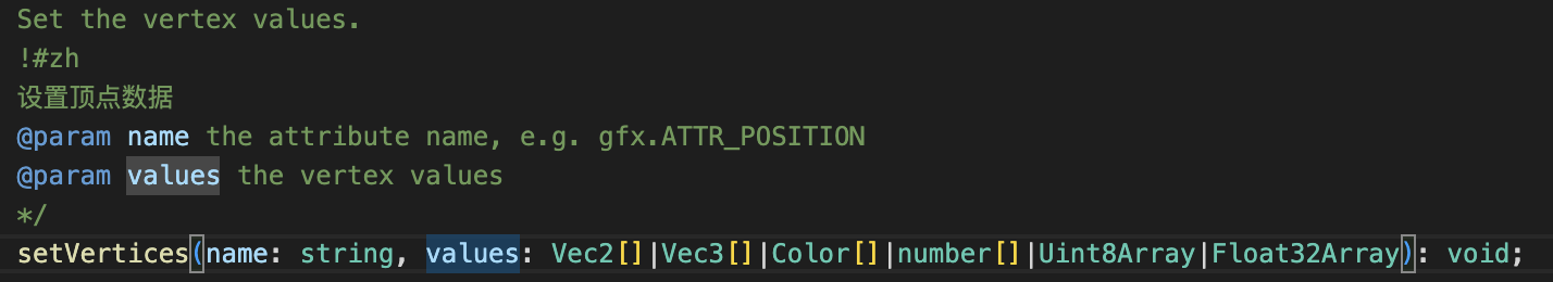 Creator 2.4.7版本,想创建subMeshes,发现typescript和js中关于Mesh.setVertices方法的参数定义不一致,导致必须使用js。这个是bug还是有意为之? TypeScript: