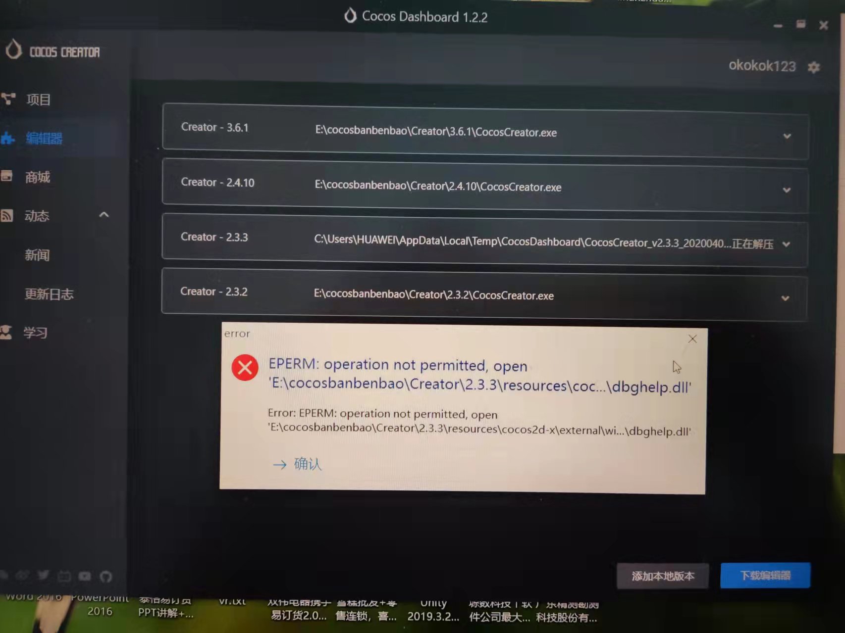 在cocos dashbaard1.2.2里下载安装编辑器老是失败 win10系统64位