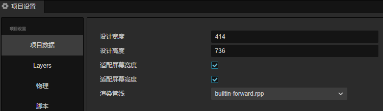我在项目设置里面已经设好了固定分辨率,以及适配宽高,如图