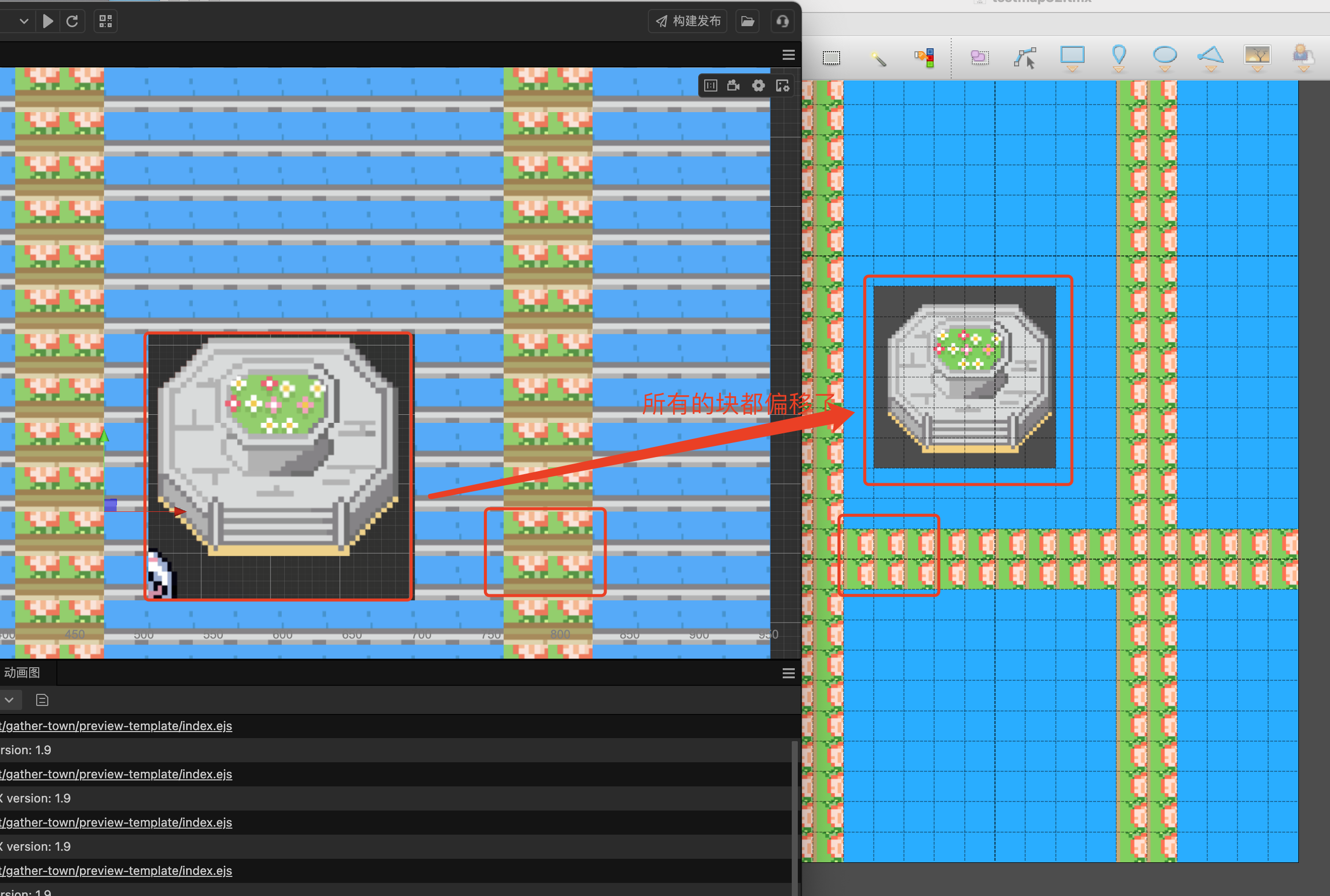 所有的图块导入cocos都偏移了。如图: