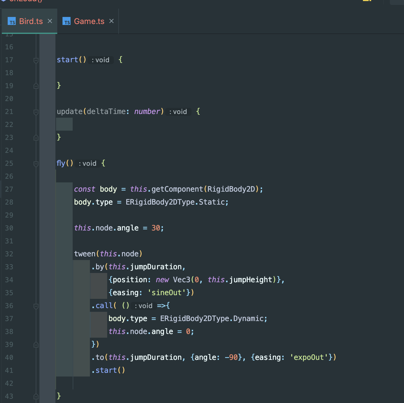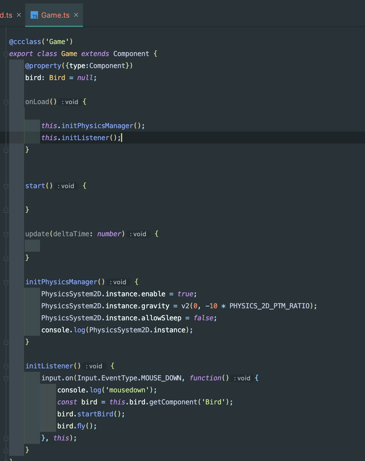 尝试复现Flappy Bird,目前有两个脚本:Bird和Game,Game挂载在Canvas节点下,Bird挂载在小鸟的节点下。在Game中启动物理系统,小鸟并没有因为重力而进行自由落体,请帮忙看看是哪里的代码或设置不对。