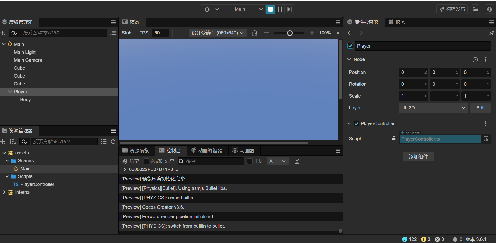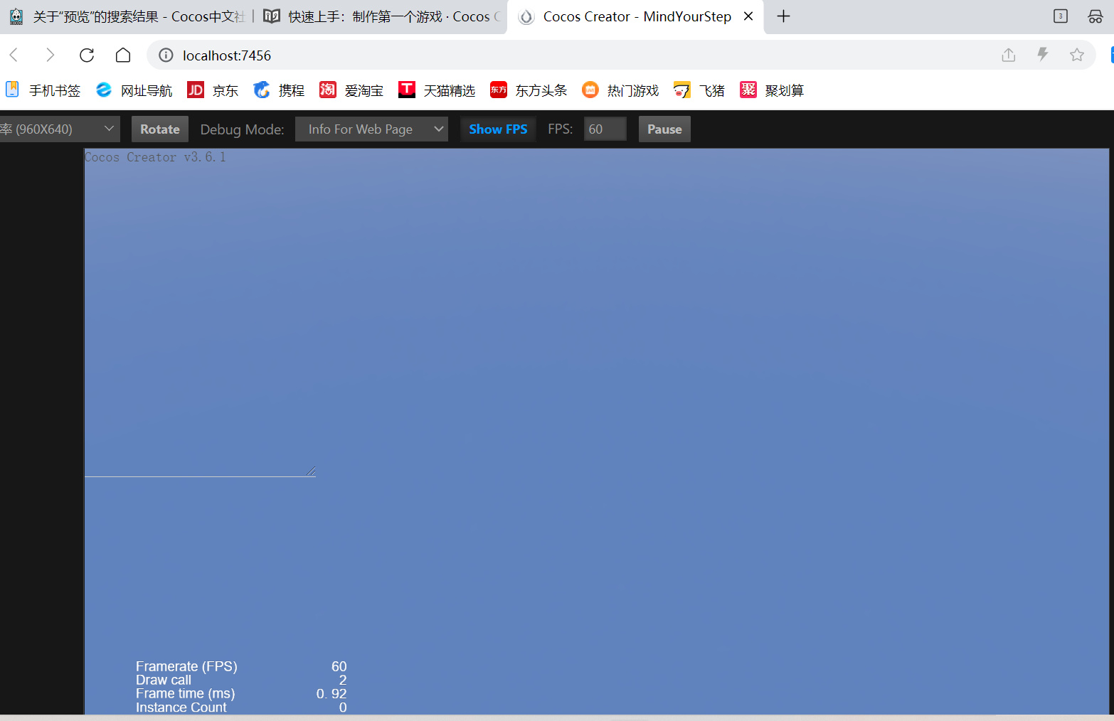 预览的时候,我电脑上不论是用浏览器还是内置编辑器预览或模拟器预览打开都是空白界面,并没有出现教程上是预览界面,试过切换预览“当前场景”或者“Main场景“都不行。请问各位大神我是哪里没做对吗?百度了一圈也无解。