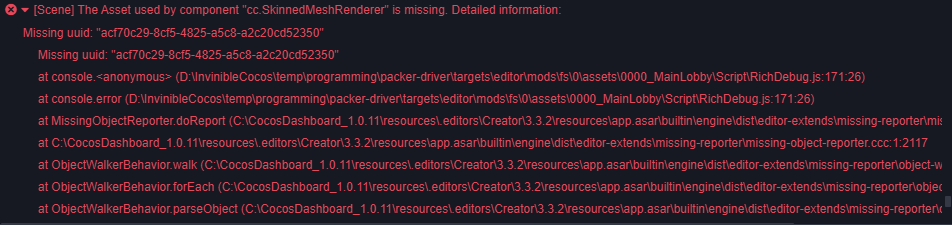 3D場景中有3D物件時,時常爆出cc.SkinnedMeshRenderer 的錯誤訊息