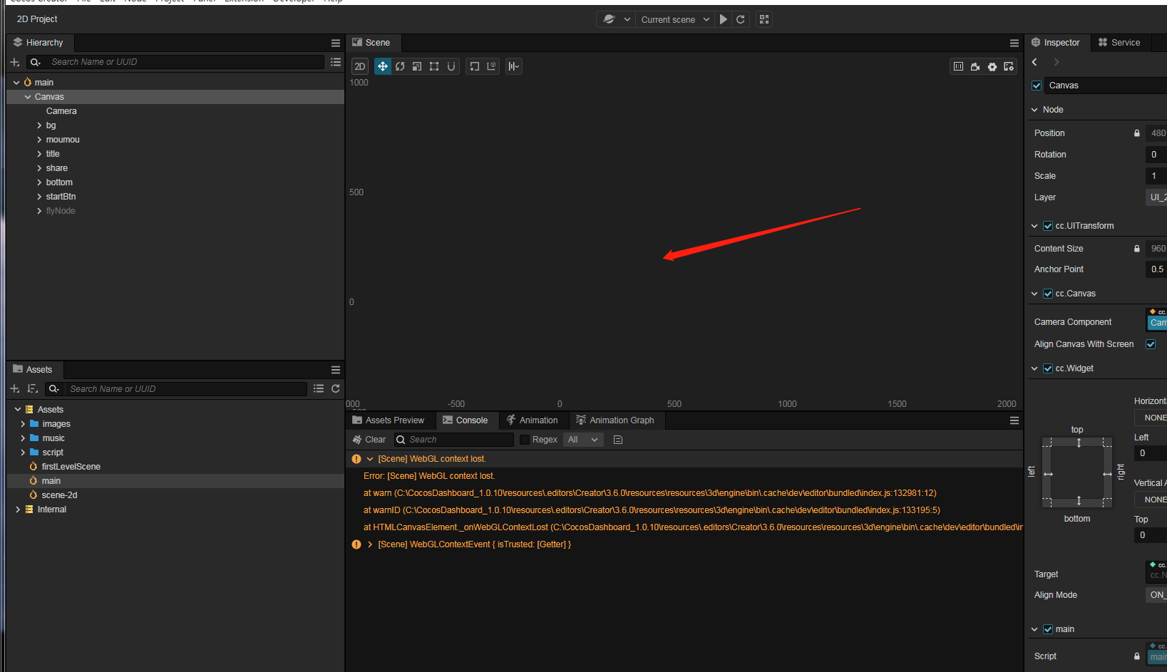 重现方式:点击 界面上Canvas 或者 鼠标滑动 失去目标