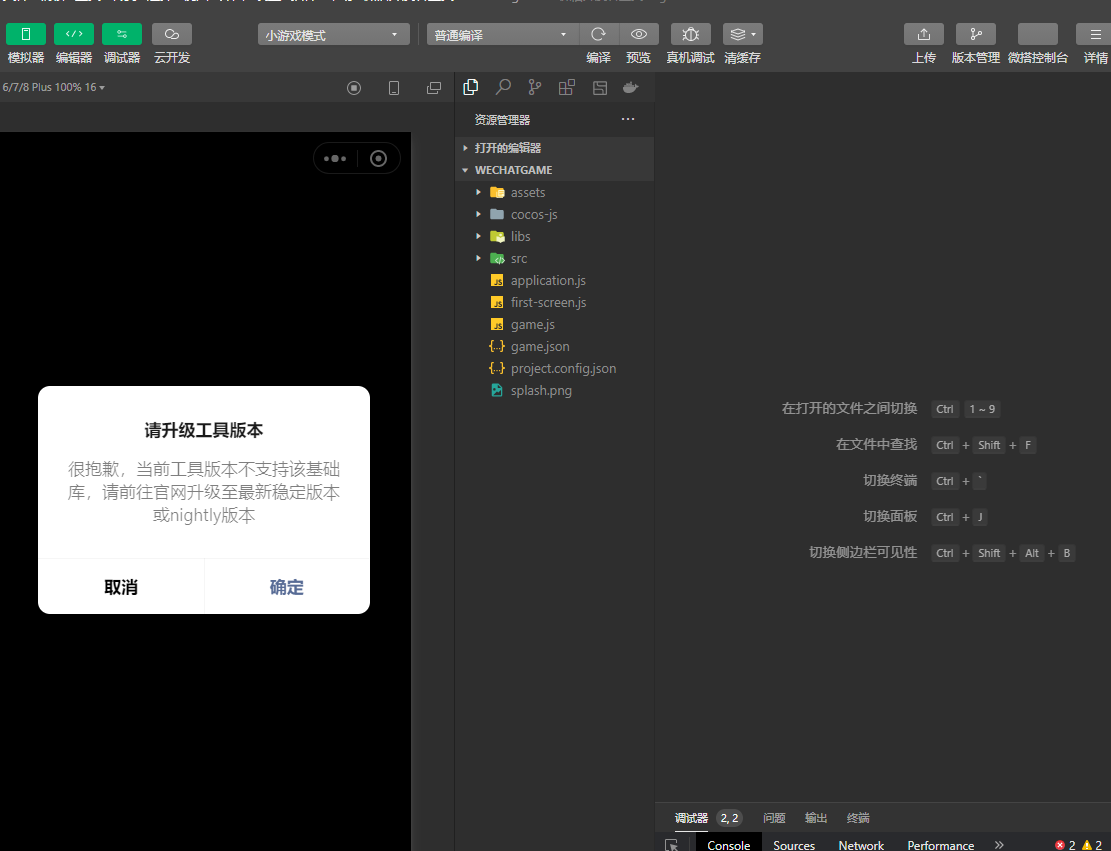 不知道是不是不支持微信开发者工具的小游戏版本(或者叫unity版本?)