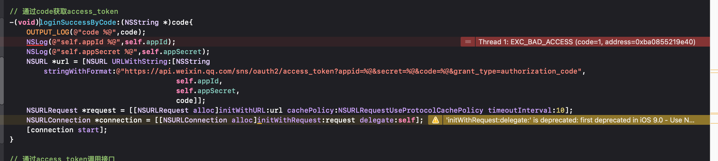 第一次调用成功,self.appid ,appsecret成功被赋值,打印是有的。
