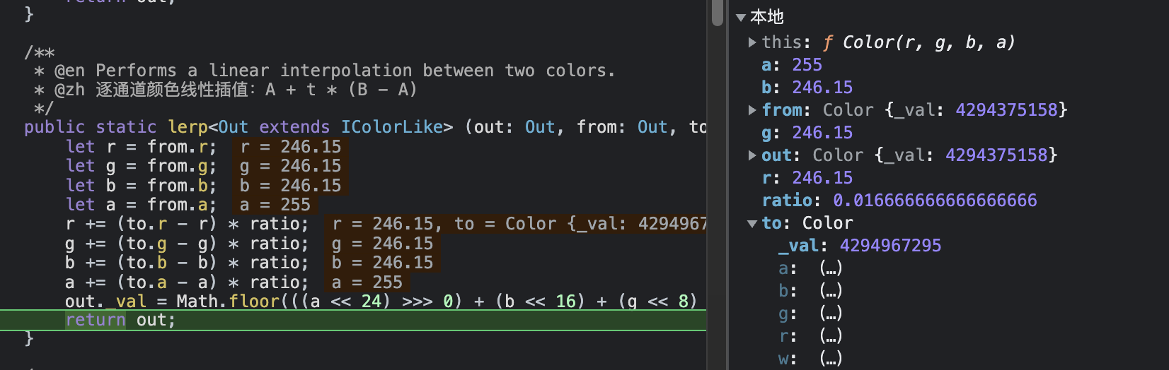 const updateColor = color.lerp(to, updateTime / durationMs);