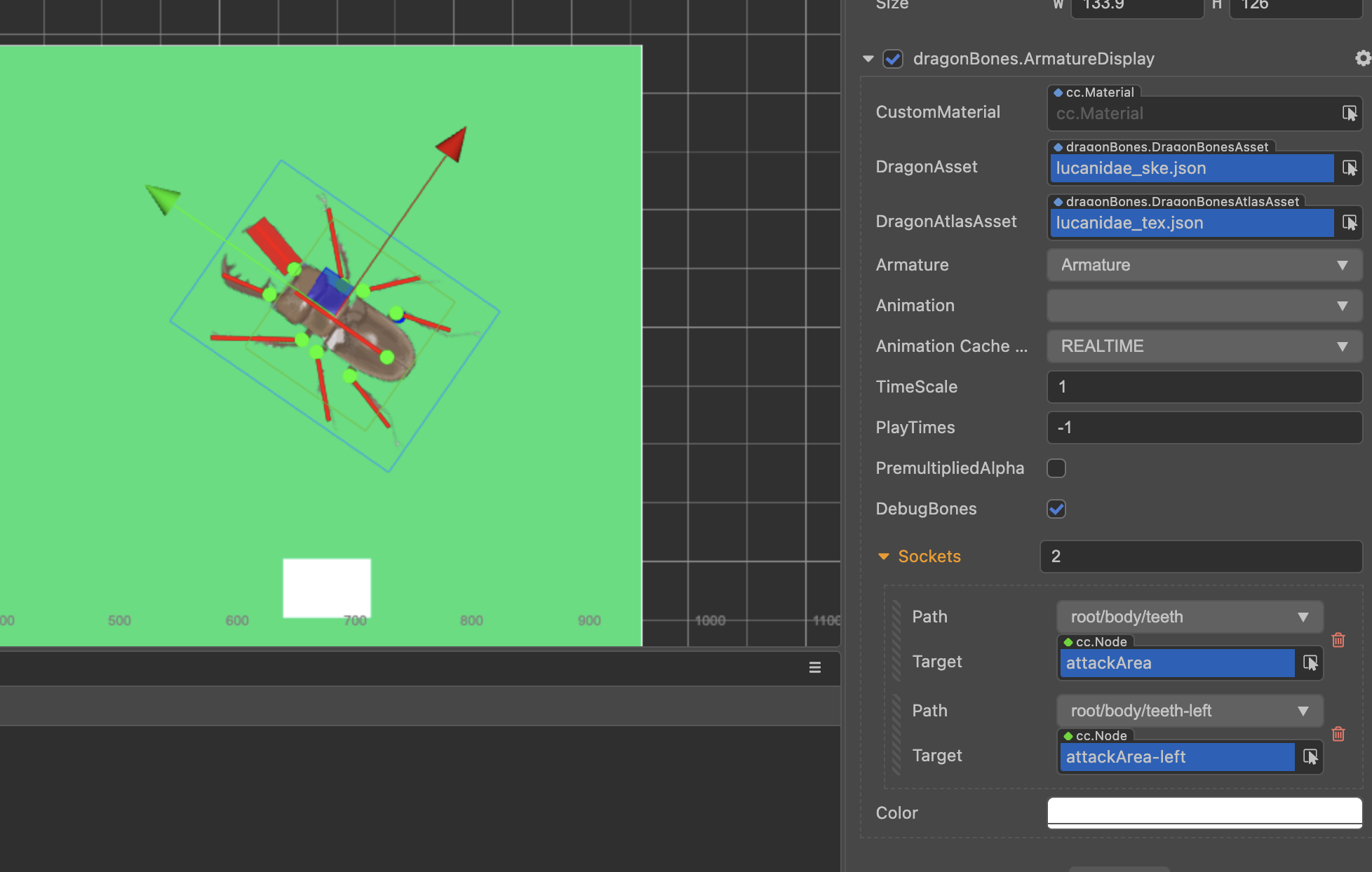 我在龙骨上绑定了对应的节点,sprite可以随着触发动画跟着骨骼移动