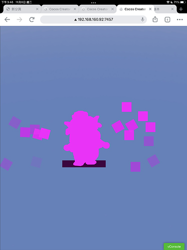 使用瀏覽器模式播放,iphone或ipad機子上使用任何版本的chrome觀看本地端路徑,webp材質會顯示粉紅色(如圖),並提示錯誤
