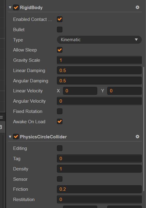 export default class NewClass extends cc.Component {@property(cc.Node) qiu: cc.Node = null; onLoad () { let manager = cc.director.getPhysicsManager(); manager.enabled = true; manager.gravity = cc.v2(0,-100); //重力 this.node.on(cc.Node.EventType.TOUCH_START,this.a,this) } start () { console.log(manager.enabled) let qiu = this.qiu.getComponent(cc.RigidBody) //获取物理碰撞组件 qiu.linearVelocity = cc.v2(100* 3, 100 * 3) } a() { console.log(manager) let qiu = this.qiu.getComponent(cc.RigidBody) //获取物理碰撞组件 qiu.linearVelocity = cc.v2(100* 3, 100 * 3) }}