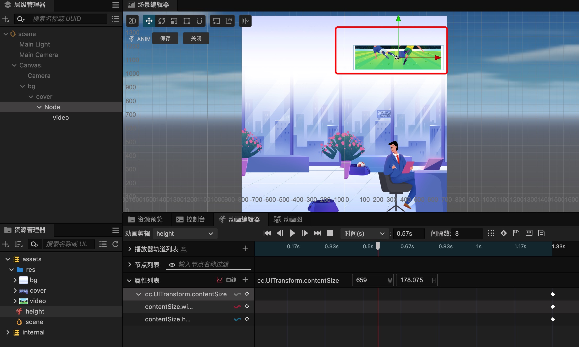 您这个需求,不适合使用 contentSize 变化来实现。 可以使用 sprite 的 filled 模式,将 FillType 设置为 vertical,Fill Start 为 1,通过动画控制 fillRange 从 0 变为 -1,即可实现从上到下逐渐显示的效果。