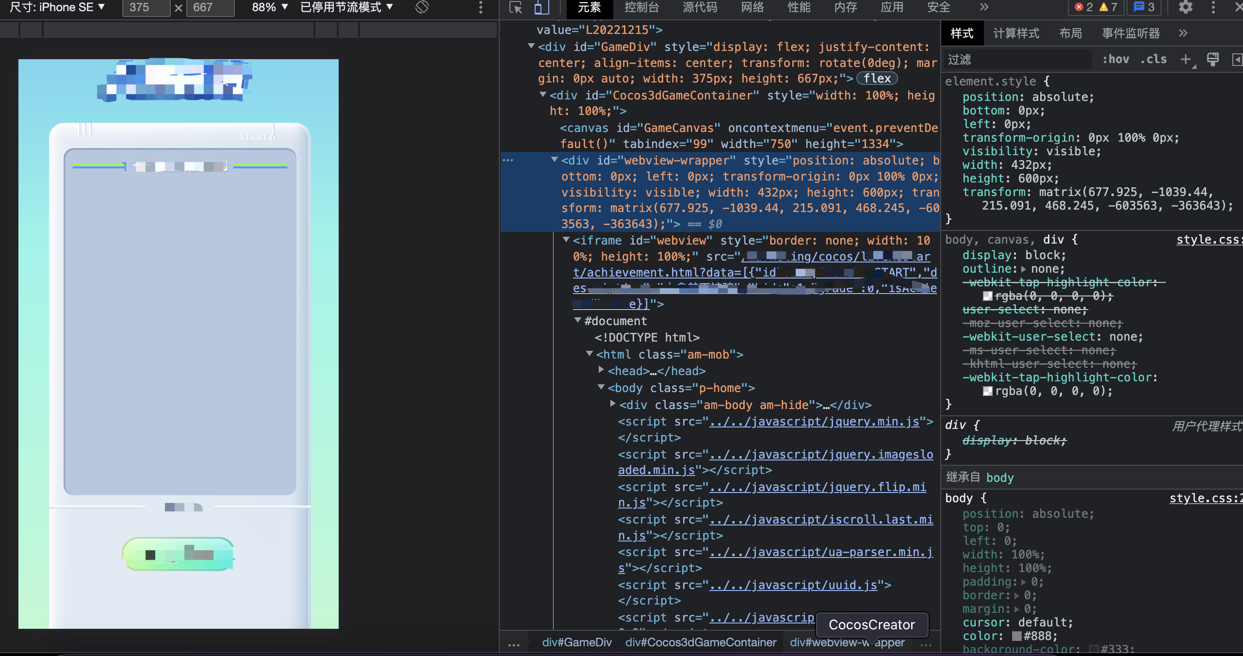node嵌入WebView,尺寸只有node一半,居中对齐,运行后看到的UI只有node的没有WebView的,查看源码能找打iframe,内容也对。