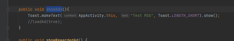 showAds需要用静态方法