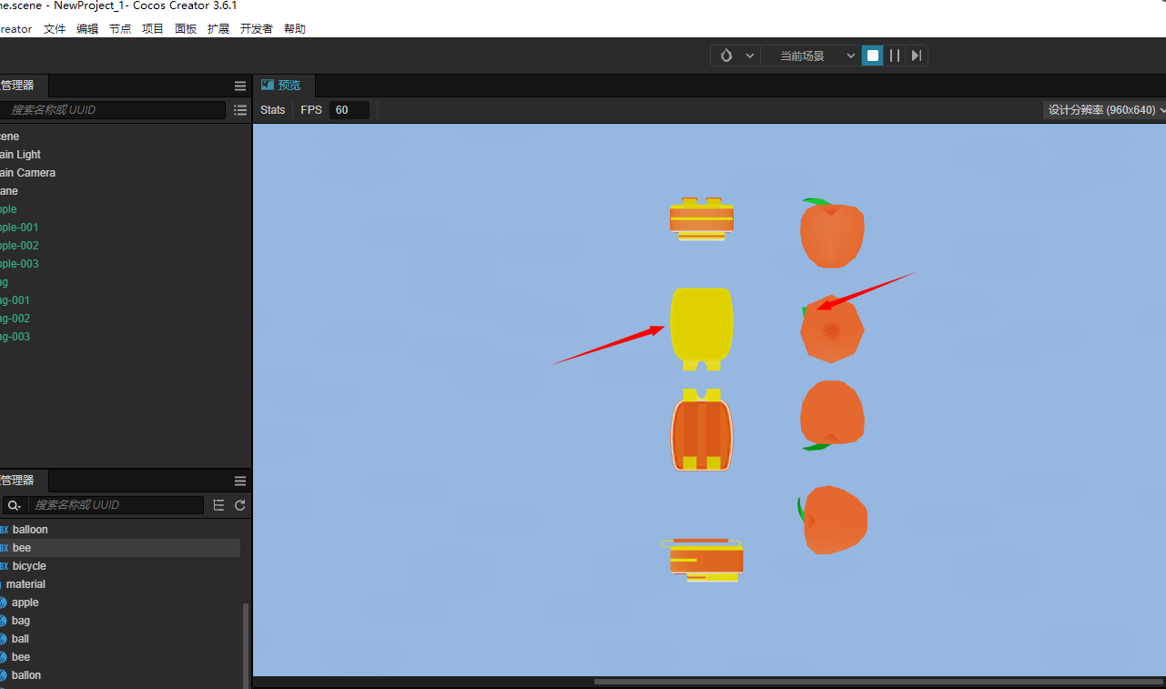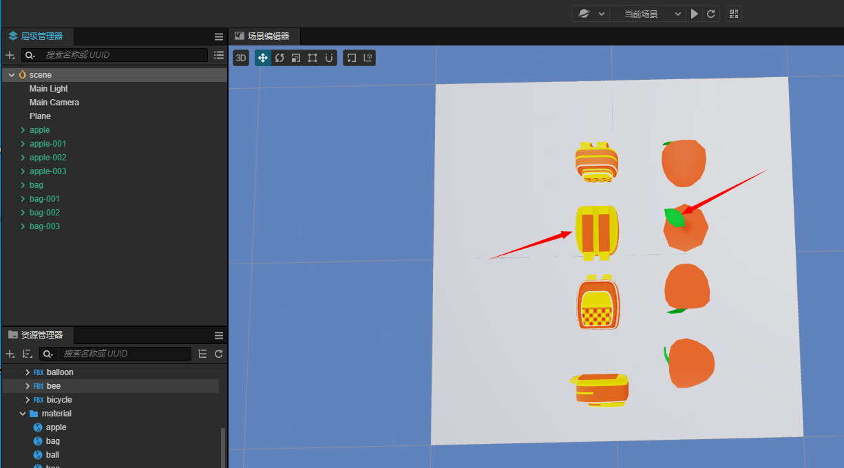下图1是场景里面的截图,可以显示背包的背带以及苹果的叶子。