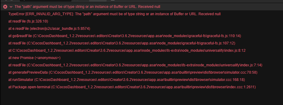 本来想着把之前场景的碰撞盒从矩形改成多边形,操作步骤基本上是这样,点开节点,删掉矩形collider组件,添加多边形collider组件,把多边形threshold改为6(最大阈值),组件points自动识别出了23个顶点,然后手动改成了6个,完了在图片上拖动那几个顶点,拖动完了顺手保存了一下想要预览看看效果,结果发现场景打不开了,以为是脚本挂载的问题就把原场景删除重新建了一个场景,从这之后就再也无法预览场景了…哪怕是新创建的空场景也不行,上面这两个就是空场景的界面和报错截图