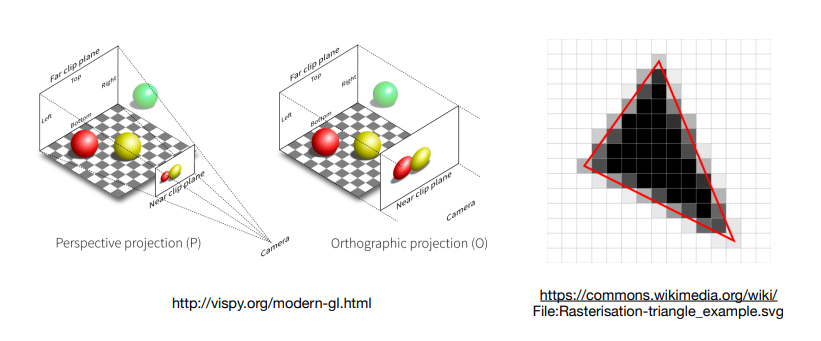 - 什么是光栅化:把三维空间中的几何形体显示到屏幕上。