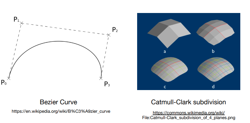 - Curves and meshes 如何表示光滑曲线、曲面等几何结构,曲面细分、曲面细分时拓扑结构保持等