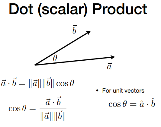 常常用来求两个向量的夹角,尤其当两个向量为单位向量时,分母自然为1,只需要求两向量的点乘即可。