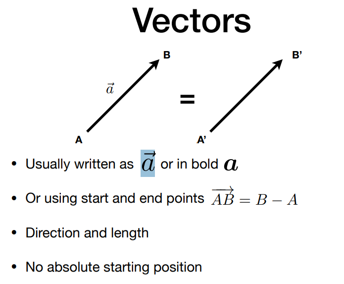 - 向量没有绝对的开始位置,无论如何移动,仍然是同一个向量。