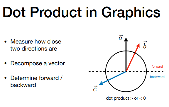- 图形学中我们谈起向量更多的认为其是单位向量,我们只关心方向而不关心长度。