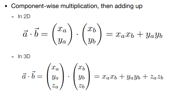 - 直角坐标系下,运算更加简单,坐标分别乘积后相加:
