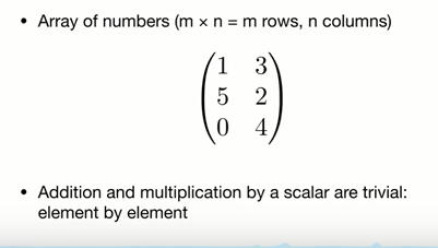 - 矩阵相乘、矩阵与向量相乘,矩阵的转置、矩阵的逆、单位矩阵,这是应用学习变换(Transform)的前奏,后续将引入齐次坐标。