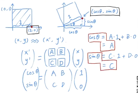 - 代入特殊点,(1,0)->(cosθ,sinθ),得到A=Cosθ,C=Sinθ