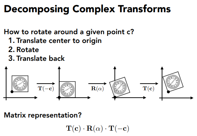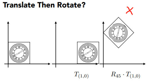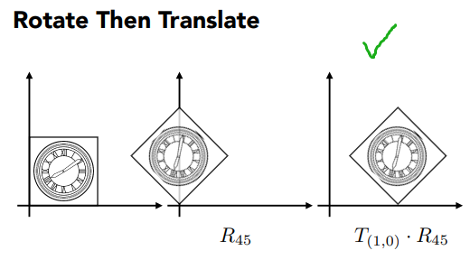 - 变换的顺序十分重要,矩阵乘法不满足交换律。