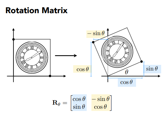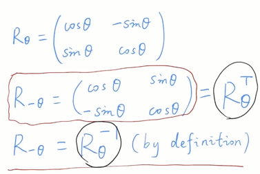 - 应用:旋转的转置等于旋转的逆,如果我们相求一个旋转操作的逆操作,即往相反方向旋转,可以求正向旋转矩阵的转置。