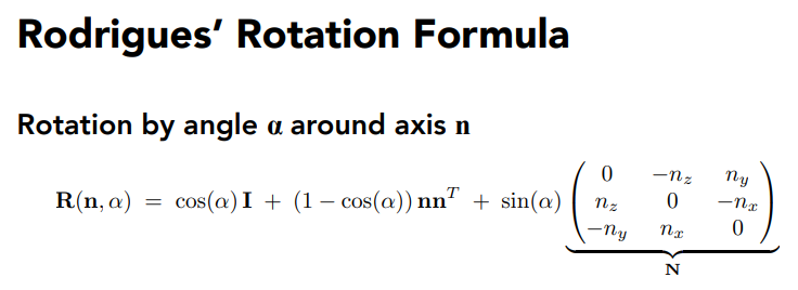 - 旋转轴 n 是过原点的,也就是起点在原点上,方向是n这个方向,旋转角度为α