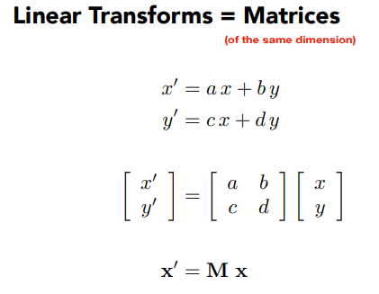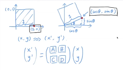 定义:能够用一个矩阵乘以输入的坐标从而得到输出坐标,这种变换成为线性变换。