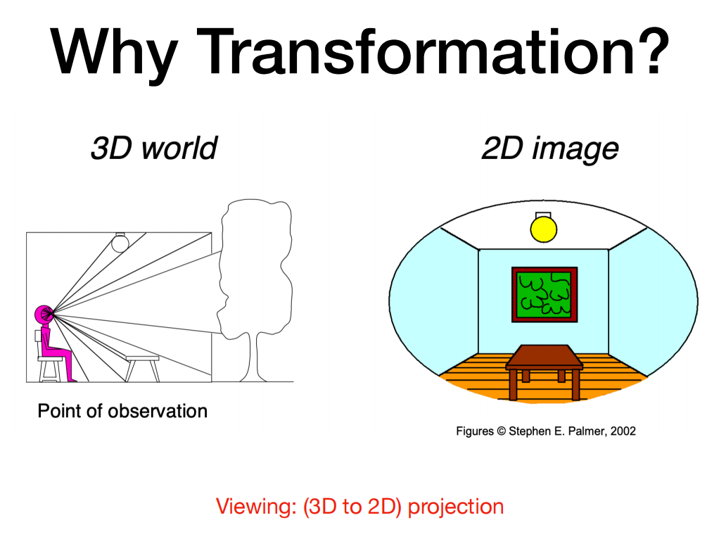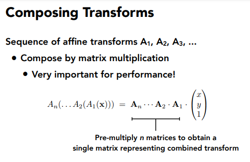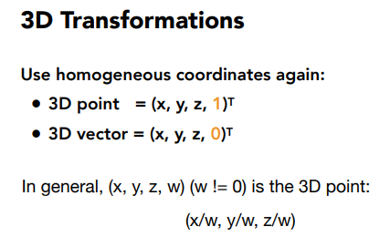 - 齐次坐标矩阵表示变换的顺序,先应用线性变换,再应用非线性变换。