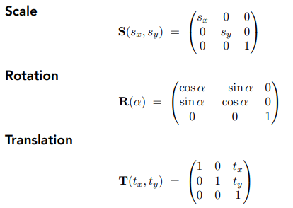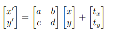 在齐次坐标下,abcd表示线性变换矩阵(缩放、反转、切变、旋转),tx和ty则表示平移变换(非线性变换),齐次坐标用一个矩阵统一了所有操作。