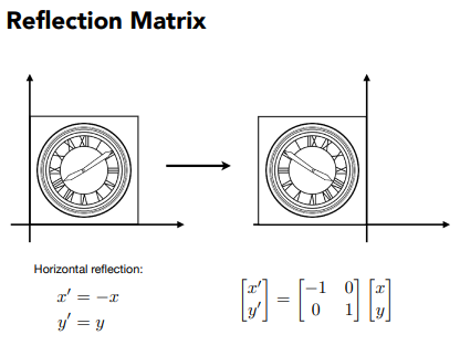 前面的缩放(scale、反转(reflection)、切变(shear)、旋转(rotate),都是类似形式,属于线性变换。