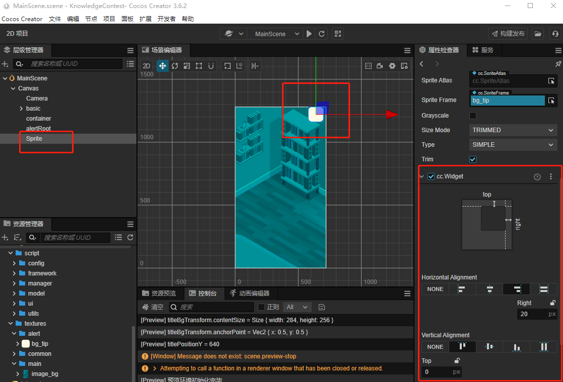 使用的是2d,创建一个场景,然后再场景中添加一个精灵,我使用代码对精灵设置位置,位置直接向上越出屏幕。把代码注释,然后使用widget,top=0,但是浏览器调试还是越出屏幕。然后我使用3.5.1引擎,位置就是对的,精灵贴着场景上边界。