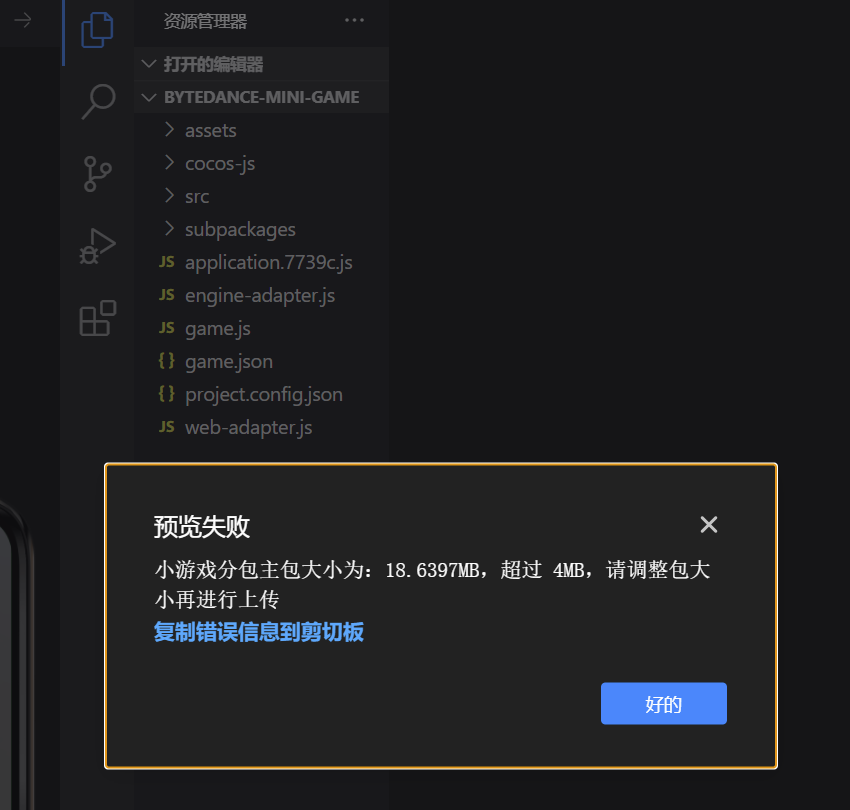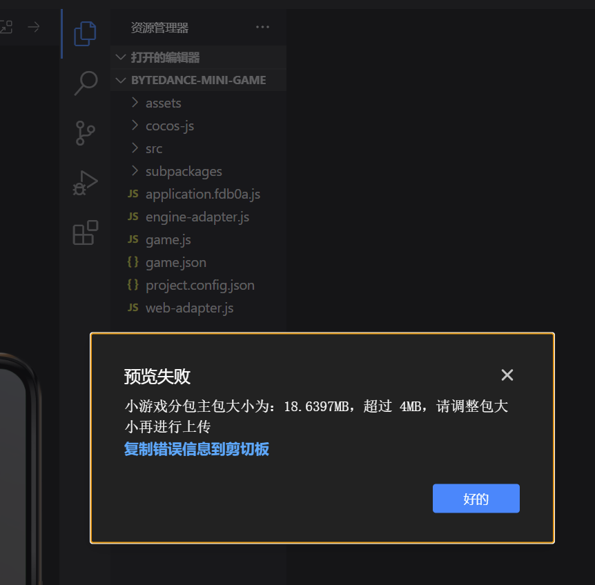但构建后的项目主包变成18M+,无法上传实现真机预览。
