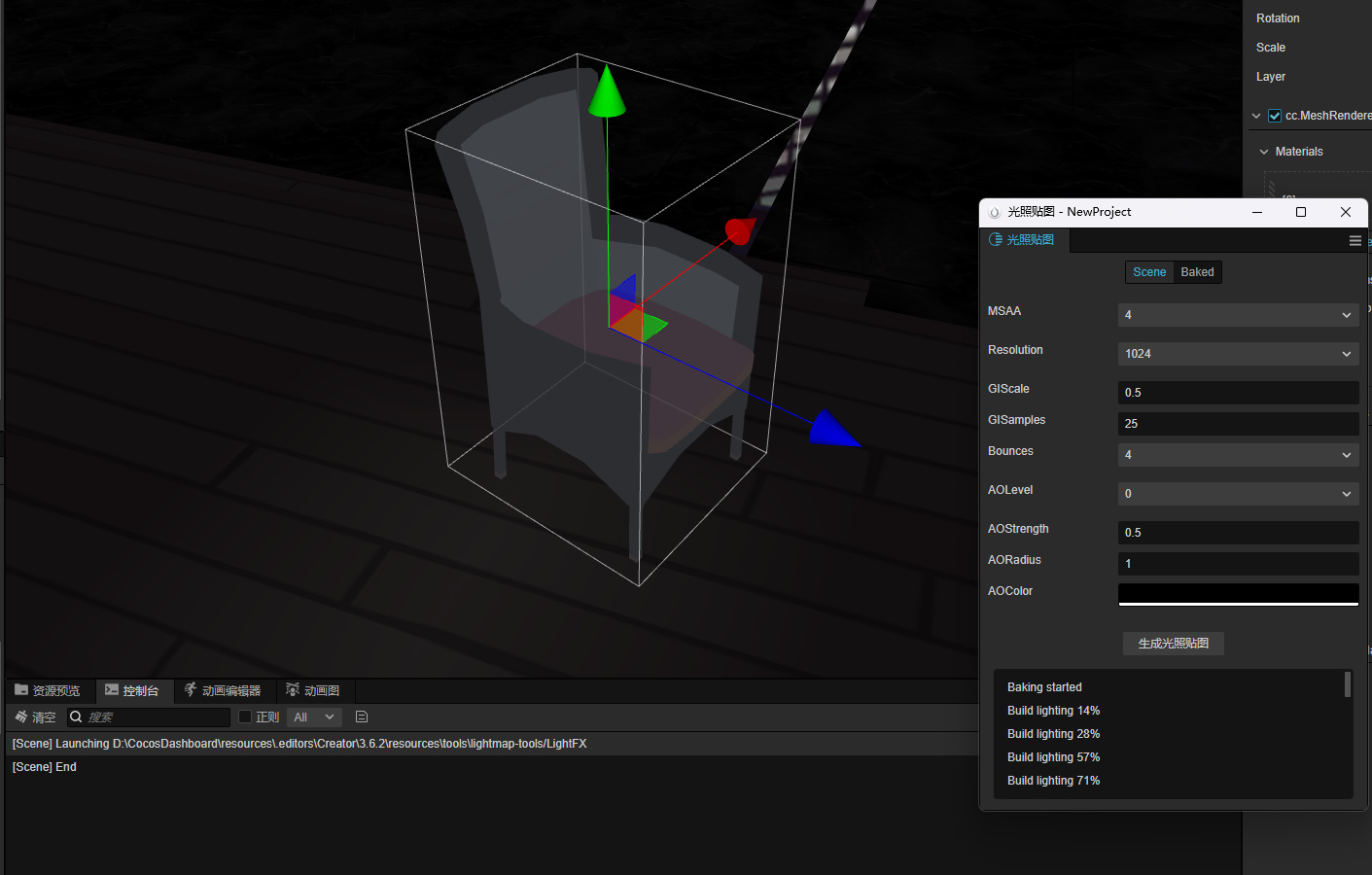 设置情况如下 灯光 被照射物体 被照射物体材质