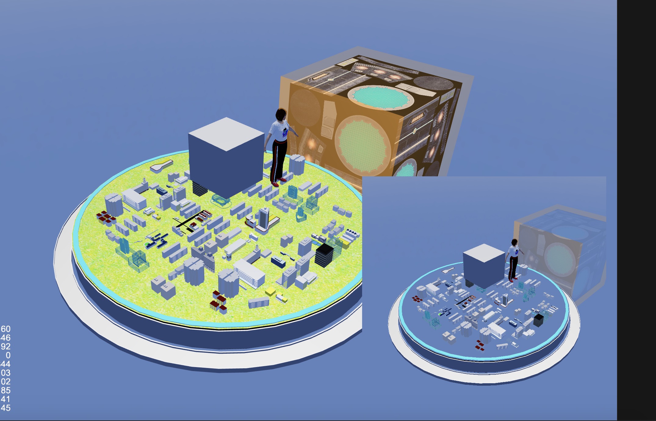 有个问题咨询下,如图所示,内置的cube和女性角色都能通过RT正常渲染到Sprite上,但是沙盘中的绿色和部分建筑的黄色却丢失了,另外一个外发光的Cube,也出现了颜色变浅变淡的问题,这个可能是因为什么导致的呢?