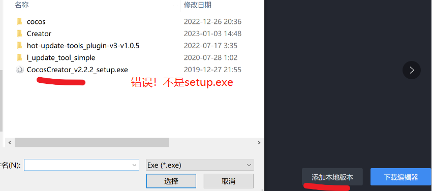 CocosCreator.exe,一定不要搞错了!注意看exe所在的目录结构