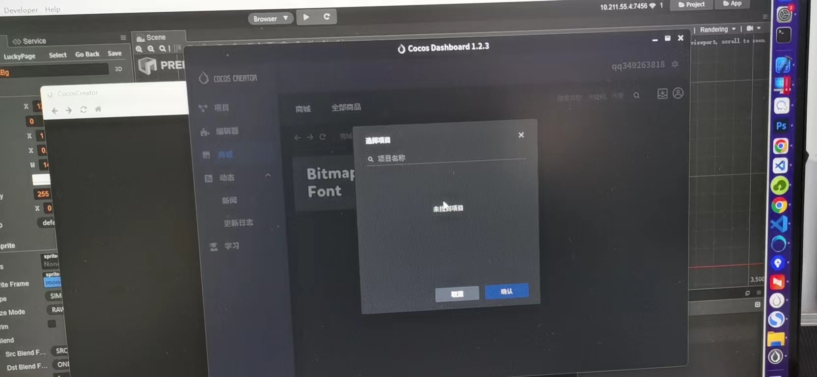 项目是出来了,但是用户反馈,这里的项目不对,没有出现它使用creator2.2.2创建的项目