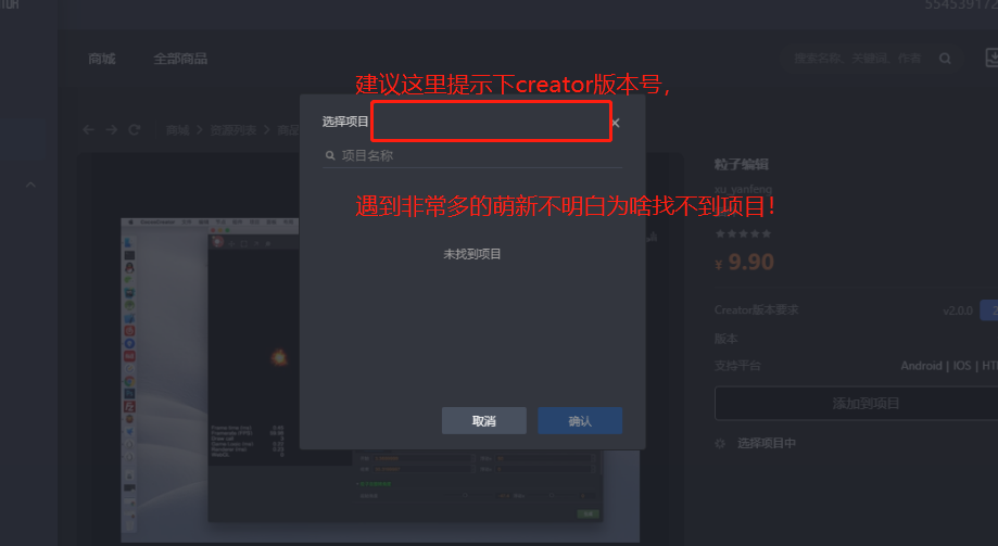 - 弹窗增加显示 Creator 的版本要求;