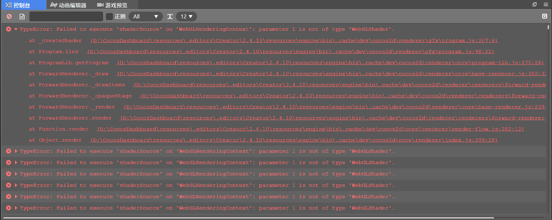 此时把该动画编辑关掉,打开任意一个预制体,会报以下错误: