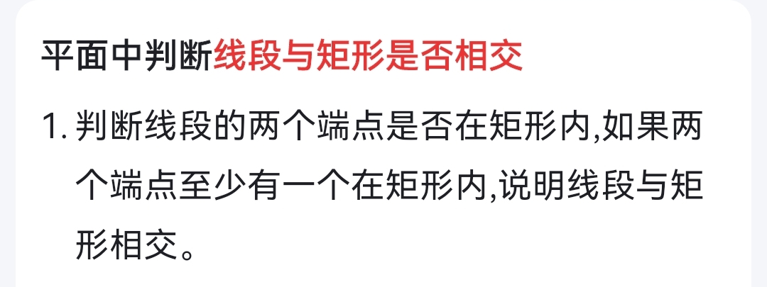 两个端点都在矩形外 但是穿过矩形也想交啊