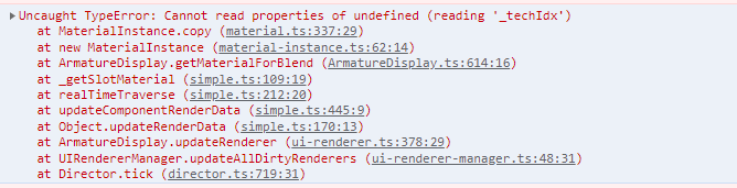 动态加载龙骨的时候或者直接把龙骨放到场景中后都会报一样的错,请问这个是什么错误?是我龙骨文件的问题还是别的?