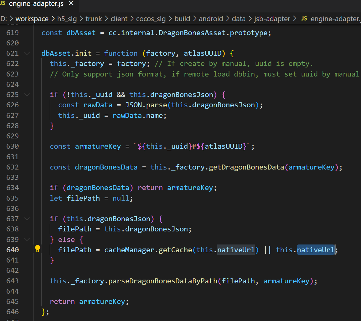 正好之前研究过,cocos在真机是用原生渲染龙骨,适配的时候改了龙骨DragonBonesAsset和DragonBonesAtlasAsset的读取和解析,具体逻辑在engine-adapter.js里