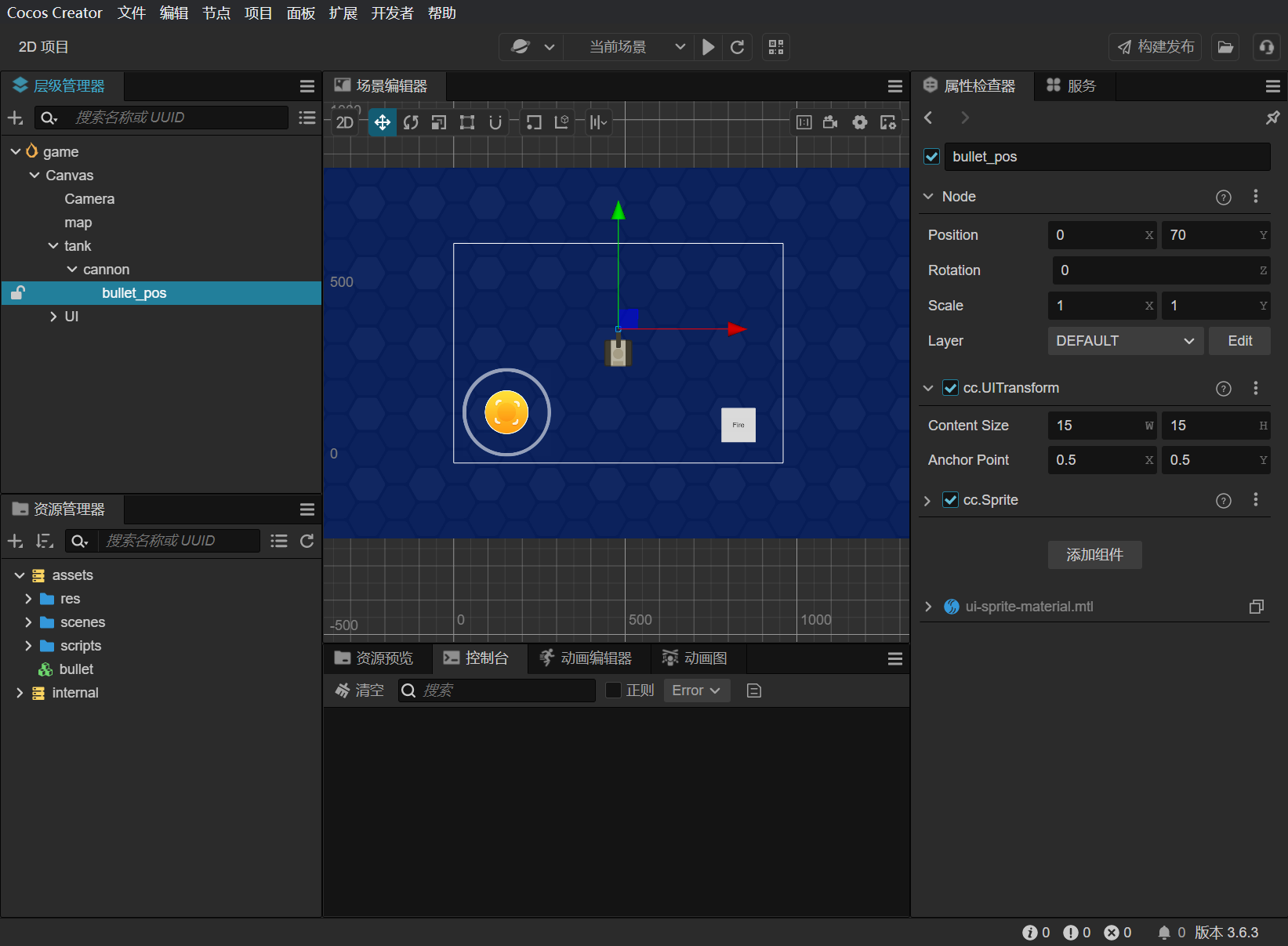现在想把坦克子弹放在 bullet_pos 的位置,用 UITransform 转换成世界坐标之后,子弹却出现在了右上角,大约歪了半个屏幕,请问要怎么转换才对呀?